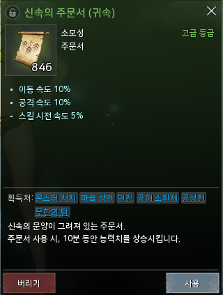 [신속의 주문서], [컬렉션], [가호석 장착효과] 등의 내용이 있어야 만들어 지는