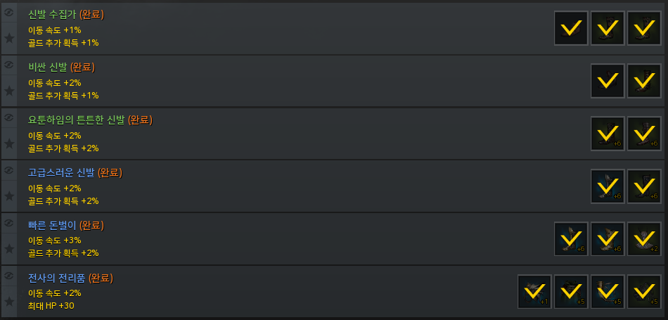 신발: 기본 속도 + 강화당 이동속도 +@