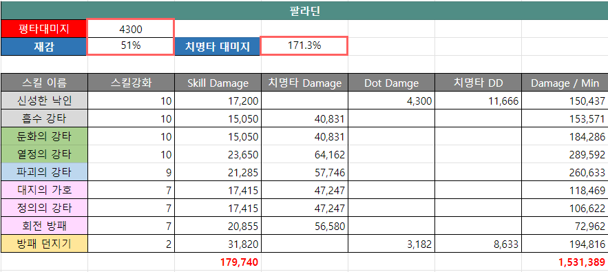 전체적인 스킬당 딜량은 다크가 좋지만 다크는 스킬의 쿨타임이 팔라보다 길어서