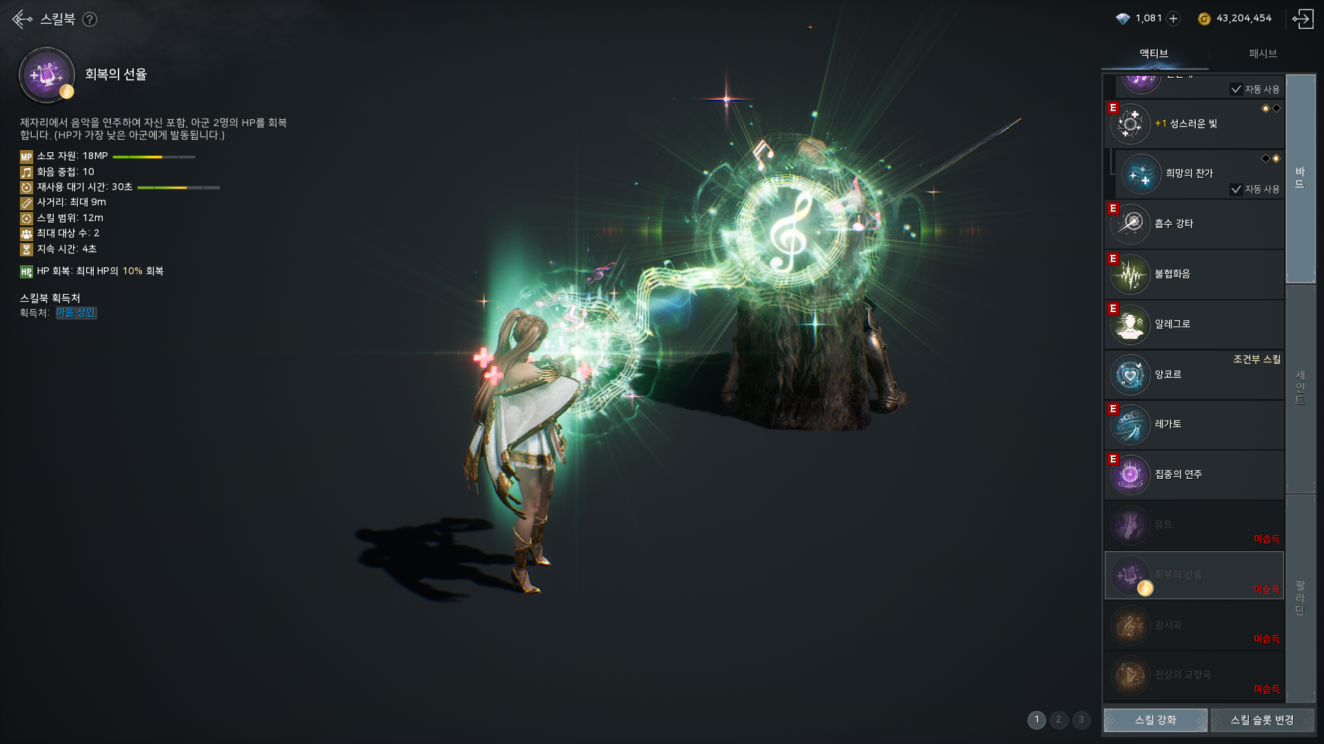 아직 배우지는 못했지만 회복의 선율은 파티원 전원이 아닌 또 자신포함 3인에게 스킬이 적용되네요