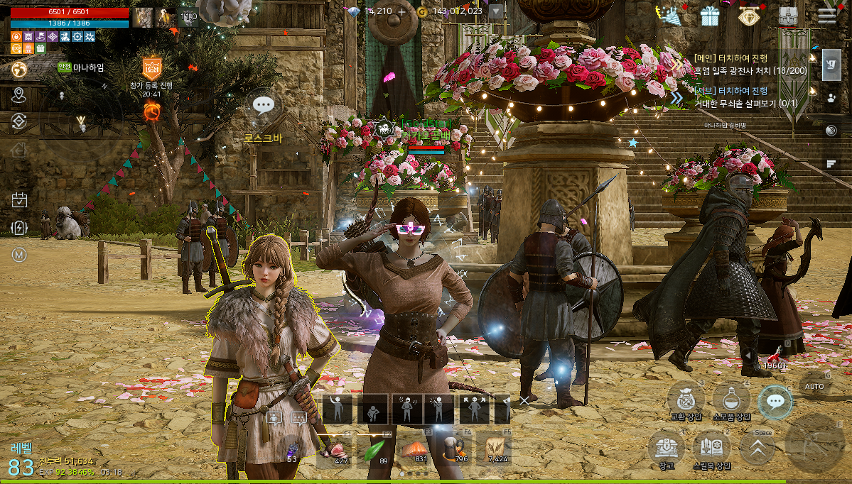 미션 1! 축제가 열린 미드가르드 마을에서 '로스크바'에게 인사를 건네주세요!👋 (인사 이모션 사용)