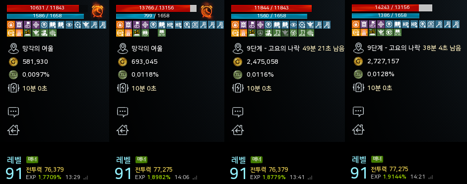 공허에서 상승 폭이 적은 이유는 1~2방컷 사냥터이다 보니 격차가 크지 않았는데,