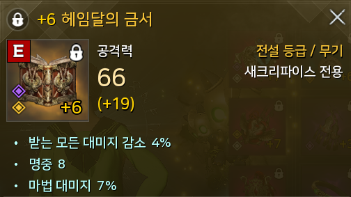 덧붙이자면, 레긴 무기의 경우도 이속옵션 자리에 받는스킬대미지감소 옵션 설정