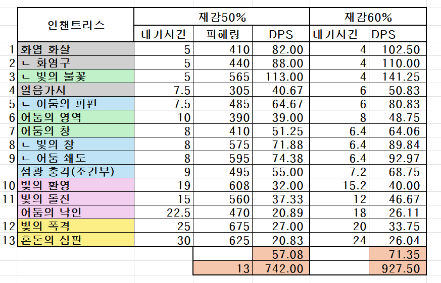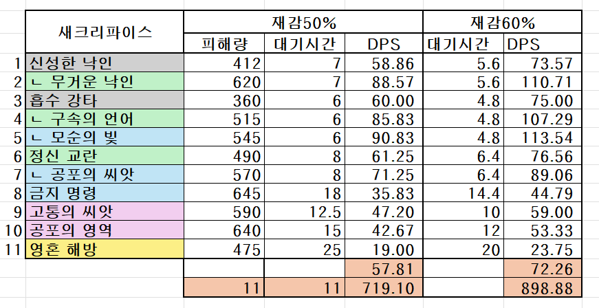 스킬 선택시에 딜계수를 비교하면 어떤 스킬을 우선해야 하는지 알 수 있겠네요.