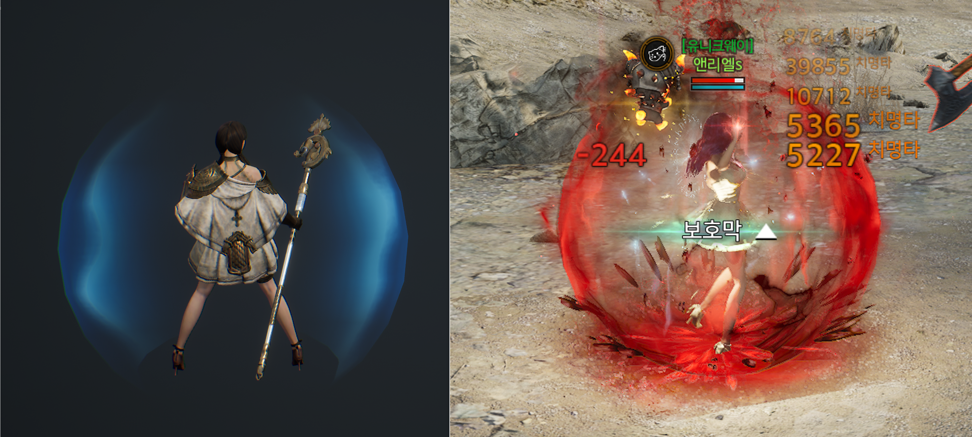 세인트 [보호의축복] 과 새크리파이스 [피의보호막] 스킬은 시각적으로도 큰 차이를 보여주는것을 알수있습니다