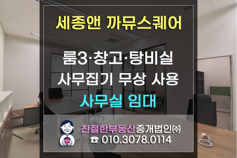 이 세종앤까뮤스퀘어 호실은 룸이 3개로 나뉘어 있고 창고와 탕비실까지 갖춰져 있어,
