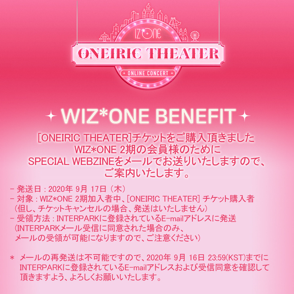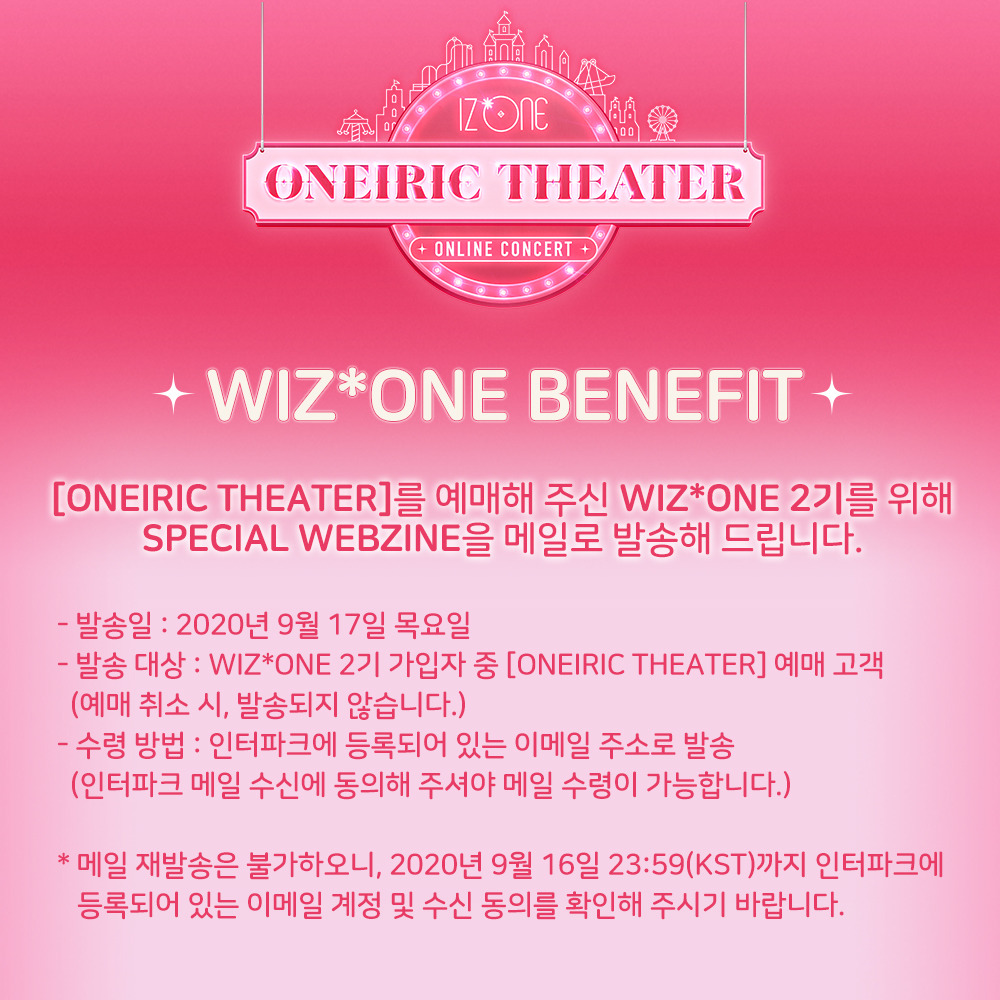 IZ*ONE ONLINE CONCERT [ONEIRIC THEATER] 예매해주신 WIZ*ONE을 위한 특전 안내 드립니다.