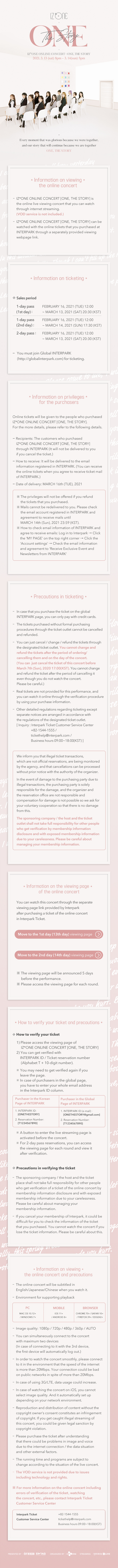 오는 3월 13일(토), 14일(일)에 진행되는 IZ*ONE ONLINE CONCERT [ONE, THE STORY] 예매 상세 안내드립니다.