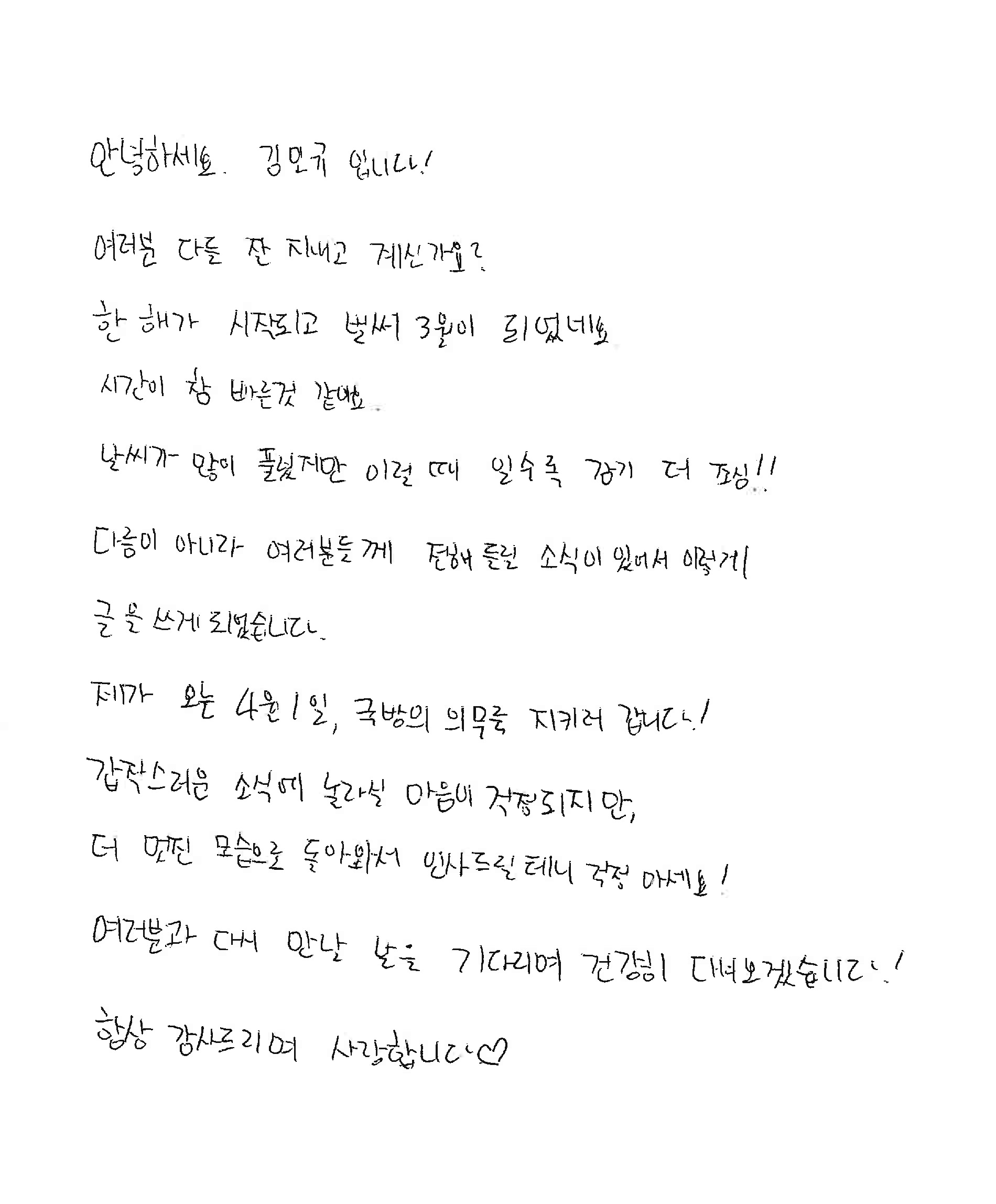 갑작스러운 소식에 놀라실 마음이 걱정되지만, 더 멋진 모습으로 돌아와서 인사드릴테니 걱정 마세요!