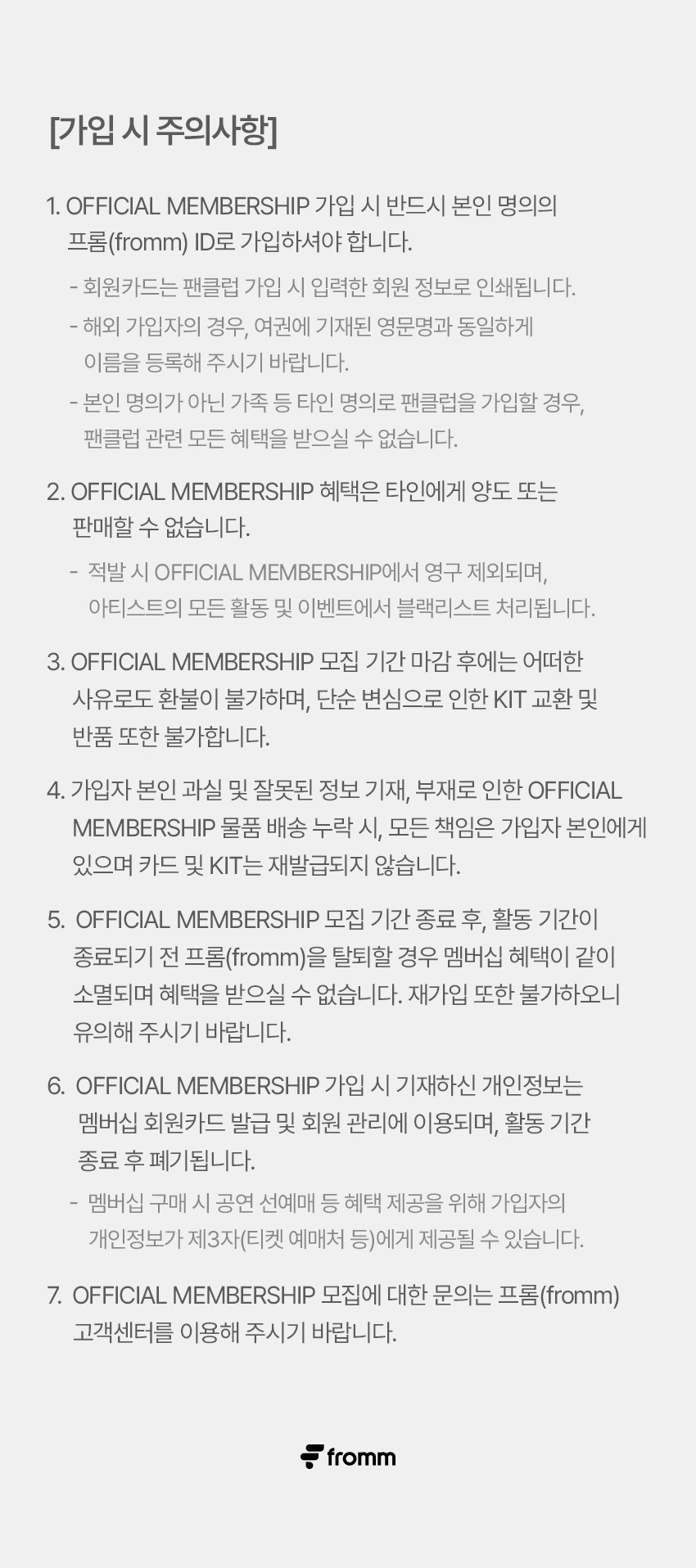 ※ 팬클럽 가입 및 배송 관련 모든 문의는 fromm 고객센터로 부탁드립니다.