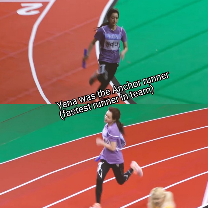 Yena was the anchor runner for the relay race. The fastest runner in the team is usually the anchor runner.