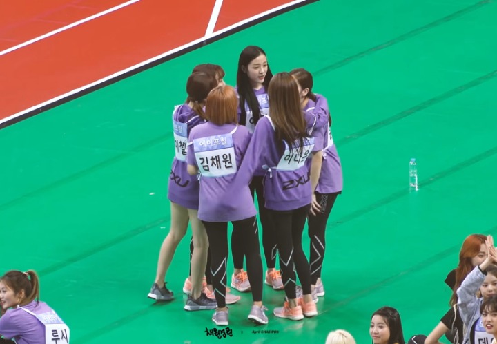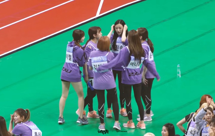The four members that participated in the 400 meter relay race were: Chaekyung, Jinsol, Chaewon, and Yena.