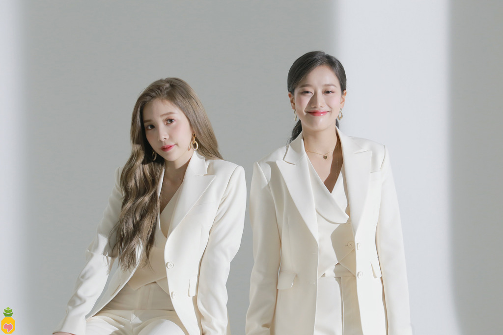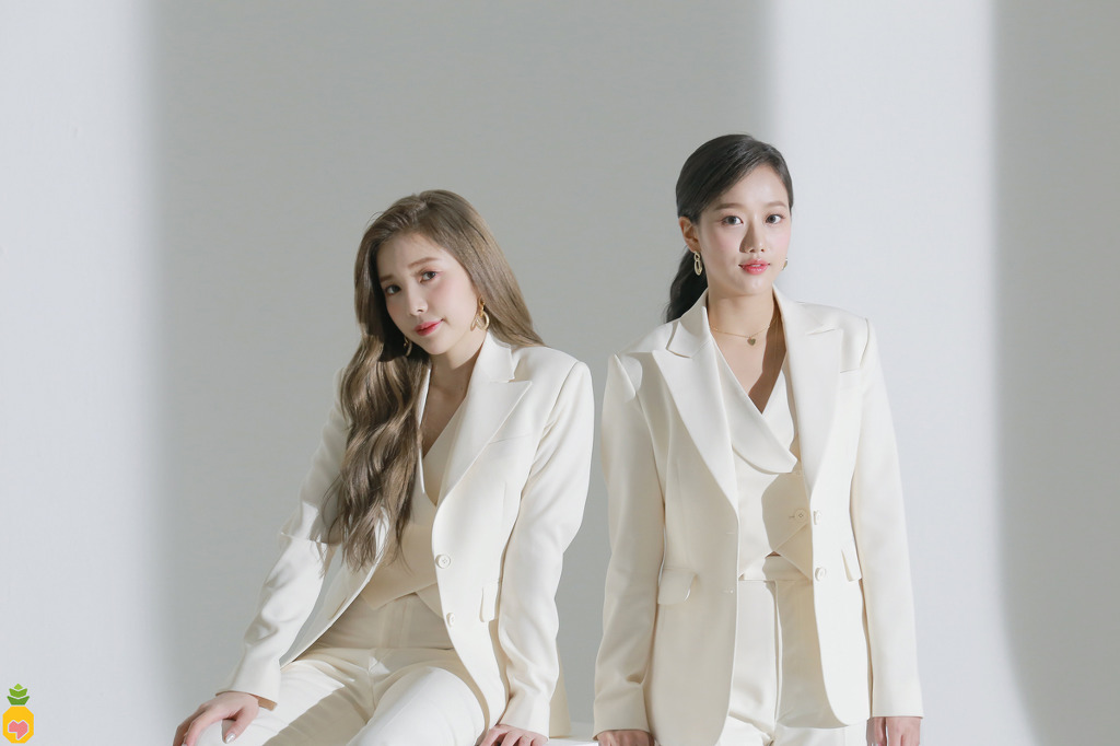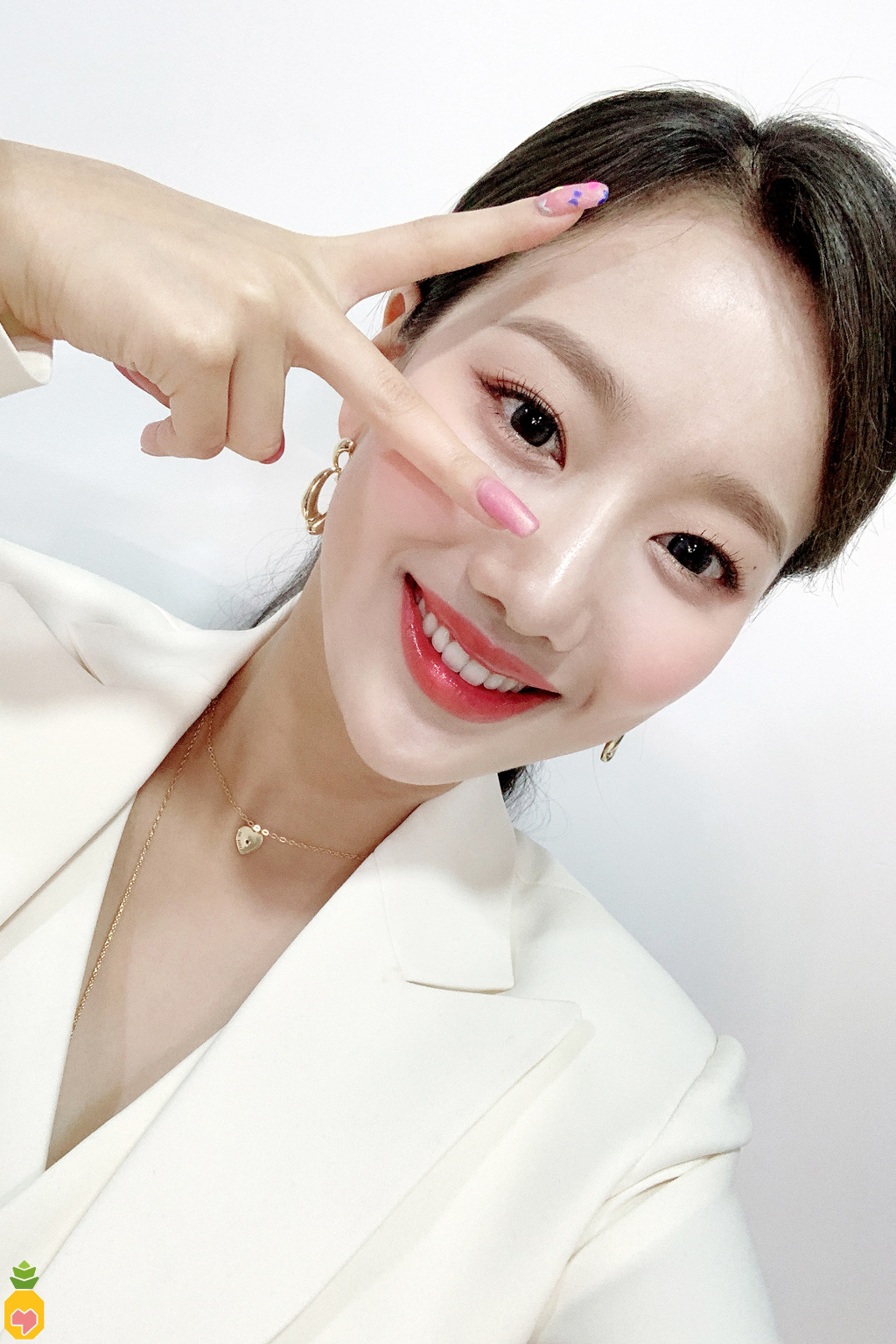 유닛 촬영 중 카메라를 발견하고 웃어주는 채경이와 나은이싹
