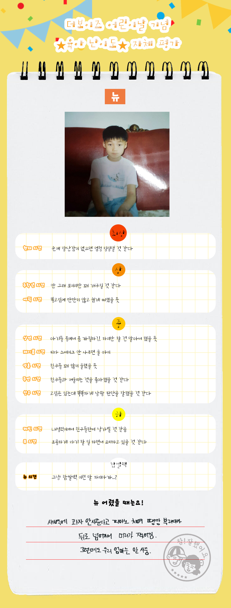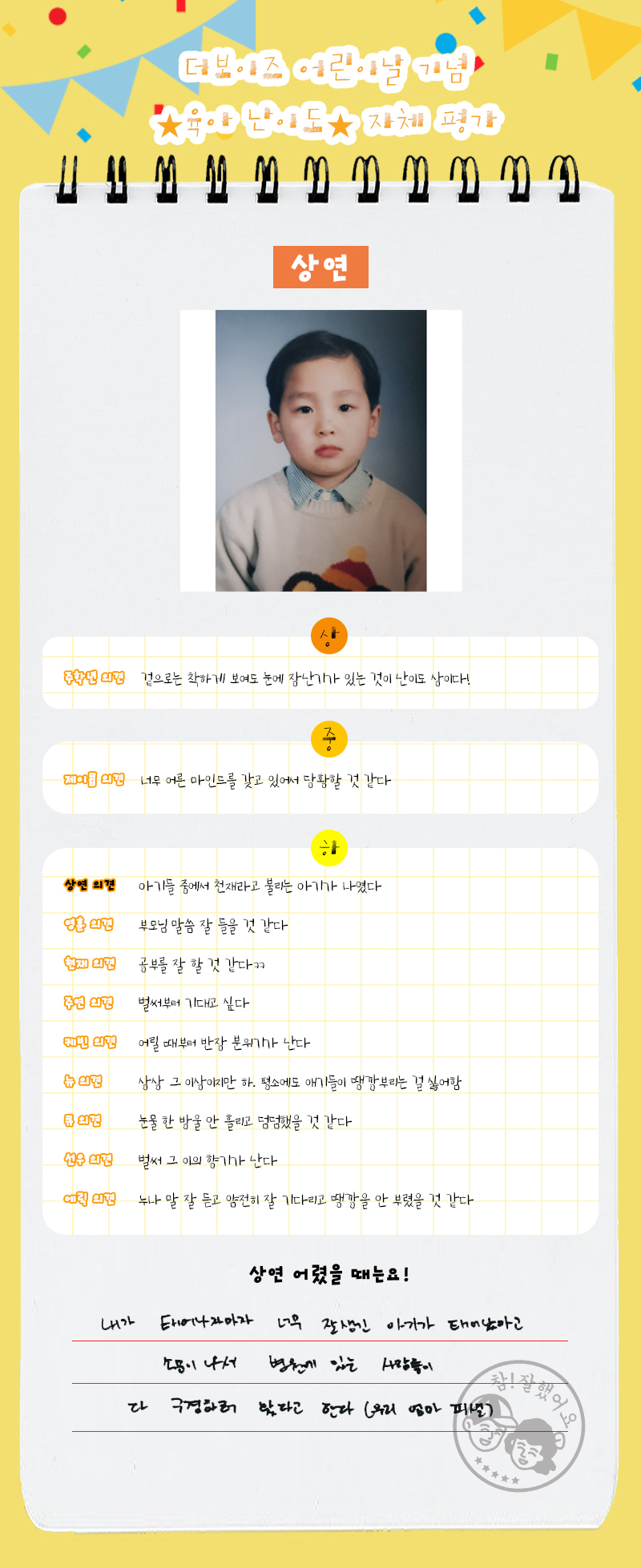 [사진]더보이즈 어린이날 육아 난이도 자체 평가 작성자더보이즈 STAFF|작성시간21.05.05|조회수20,023 목록 댓글 320 글자크기 작게가 글자크기 크게가 다음검색 현재 게시글 추가 기능 열기 북마크 공유하기 신고 센터로 신고 댓글 댓글 320 댓글쓰기 답글쓰기 댓글 리스트 작성자쌀구 | 작성시간 21.09.07 박박 웃는 중.. 더보이즈 왤케 웃겨 작성자빵훈! | 작성시간 21.10.23 ㅋㅋㅋㄲㅋㄱㅋ 작성자김똥굴 | 작성시간 22.02.20 볼 때마다 선우 앞니 두 톨이랑 뽀둥한 입술 너무 사랑스러움... ㅠㅠ 작성자흰담비큐람쥐 | 작성시간 23.02.15 작성자낭만파초코볼 | 작성시간 24.12.17 아 개웃기네 댓글 전체보기