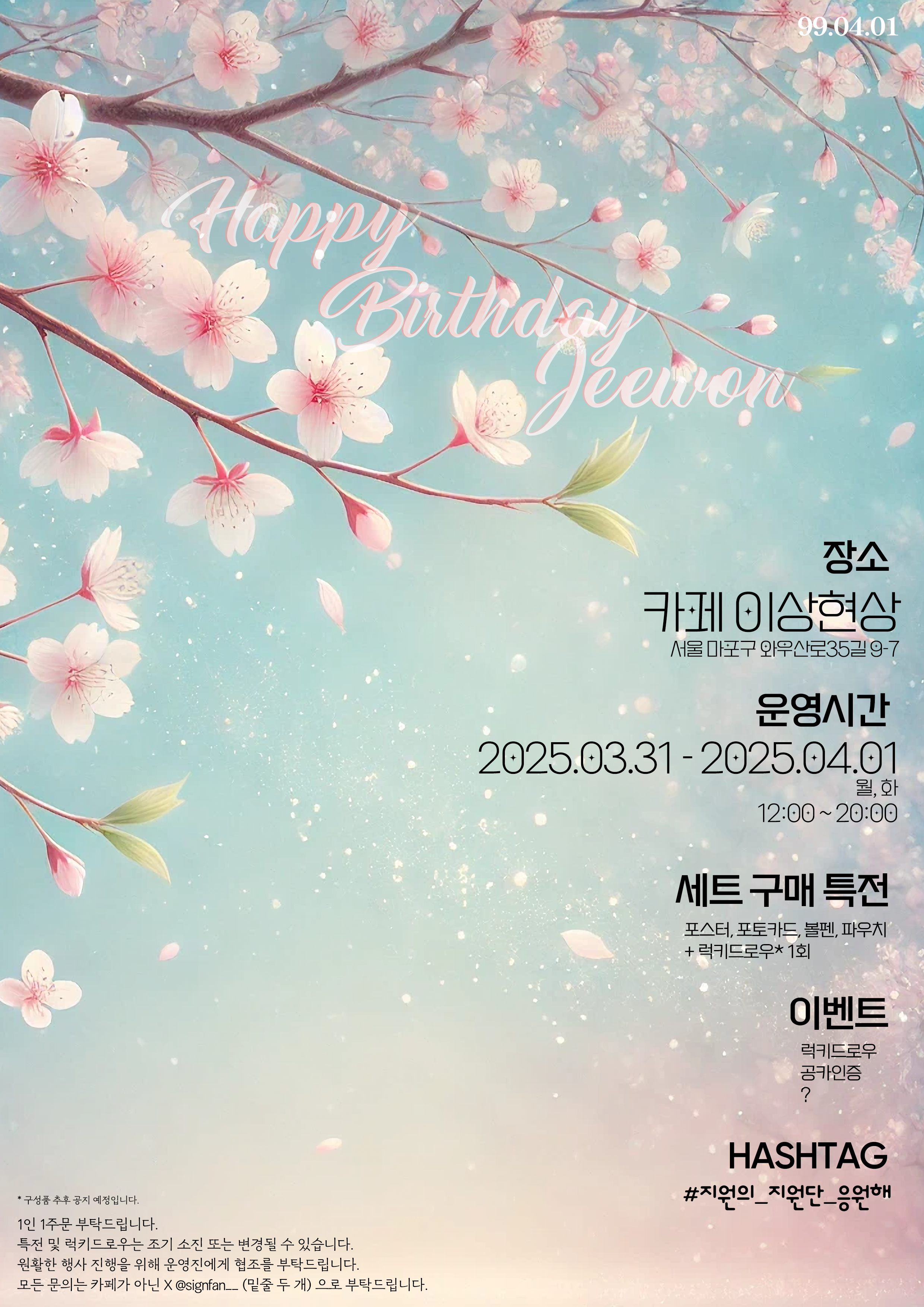 안녕하세요. 이번에 지원이 생일카페를 열게되어서 공카에도 공유를 드립니다.