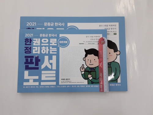 오른쪽이 2021 문동균 한국사 한권으로 모든 것을 정리하는 판서노트(한정판) 입니다.
