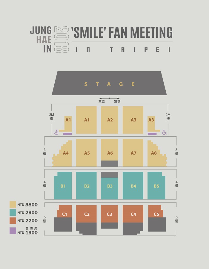 4. Ticket Price: Area A 3,800 NTD / Area B 2,900 NTD / Area C 2,200 NTD / Disabled Seats 1,900 NTD