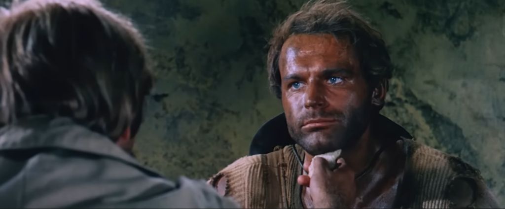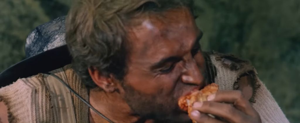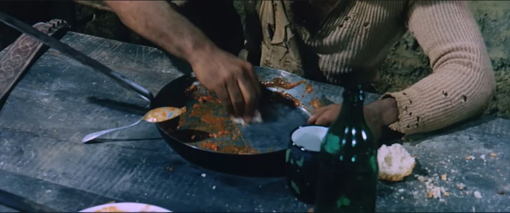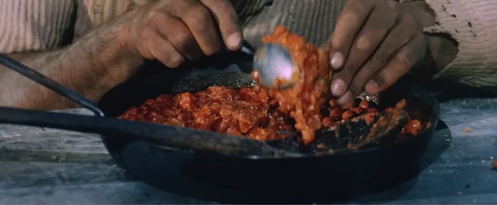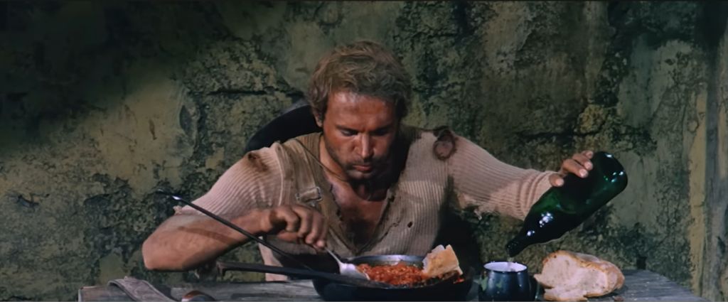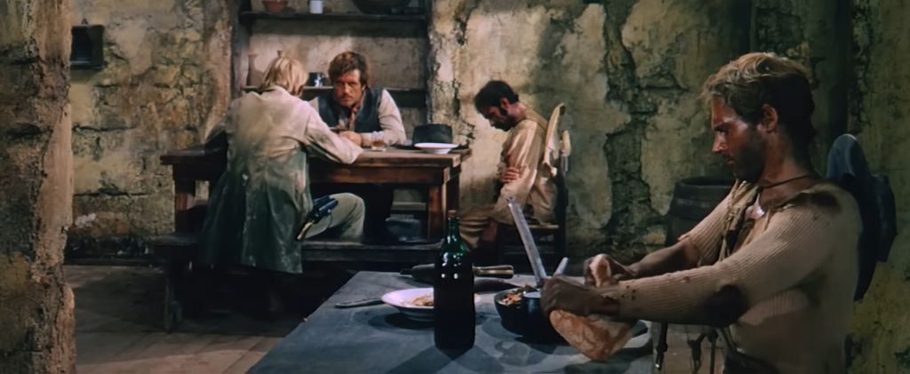또 하나는 내 이름은 튜니티(They Call Me Trinity, 1970)라는 코믹 서부영화에서 주인공 튜니티가 식당에서 콩요리를 먹는 장면이야.