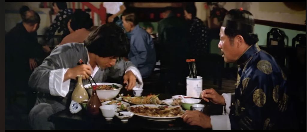 하나는 위에서도 말한 취권(Drunken Master, 1978)에서 주인공 황비홍이 무전취식을 하는 장면이야.