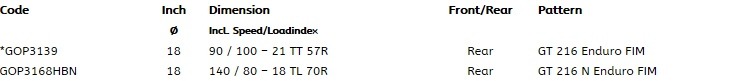 1. 품명 및 치수 : FIM 타이어 뛰어난 성능을 자랑하는 GT216 모델 입니다.