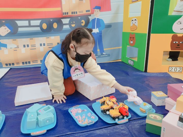 (11/10)오감놀이-택배놀이~♡^ 작성자열매반 김선화 선생님|작성시간22.11.20|조회수143 목록 댓글 0 글자크기 작게가 글자크기 크게가 띵똥~택배왔어요~^0^우리가 기다리는 물건을 가져다주시는 택배아저씨♡^^오늘은 우리친구들이직접 물건을 배달해보았어요~^^택배 왔습니다~~~^0^ ♡♡♡ 다음검색 현재 게시글 추가 기능 열기 북마크 공유하기 신고 센터로 신고 댓글 댓글 0 댓글쓰기 답글쓰기 댓글 리스트