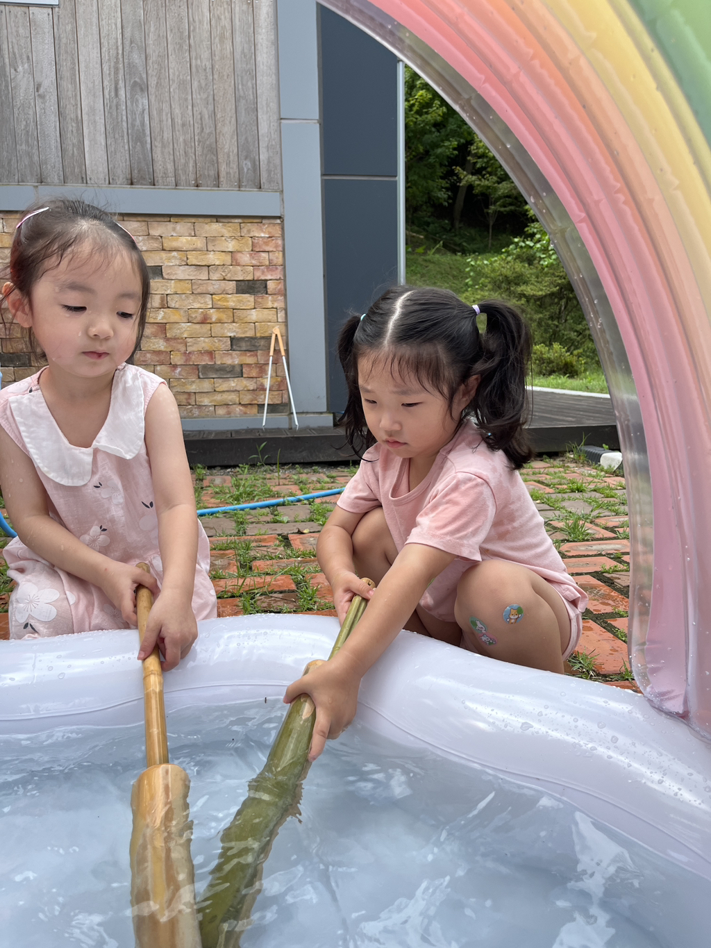 친구와 함께 대나무 물총으로 놀이를 해보았어요 🔫