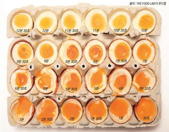 계란의 흰자는 반숙되고, 노른자는 완숙되는 계란