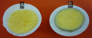 1) 흰자 : 60℃ → 80℃ 2) 노른자 : 65℃ → 70℃