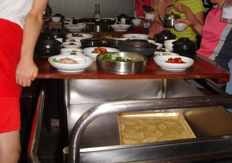 주방에서 상을 전부 봐서 수레에 끌고 와 그대로 손님 상에 밀어 넣고