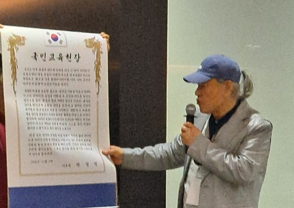 덧붙여서 이 감독은 “중국을 지나, 고향 함경도를 바라본 적이 있었는데, 황폐한 환경을 접했을 때, 대한민국의 자유민주주의를 건국한 이승만대통령의 위대함과 공산주의를 건국한 김일성을 생각하면서 눈앞이 캄캄했다”고 말하며, “지난날을 뒤돌아보면, 우리 국민이 한민족의 일원으로 태어난 것에 대한 높은 긍지와 투철한 사명의식을 밝히고 있고, 우리 국민교육이 나아가야 할 방향과 국민윤리를 제시하고 있고, 반공 민주주의정신으로 새로운 역사를 창조할 것을 다짐하고 있는, 박정희 대통령 때 만들어진 ‘국민교육헌장’의 중요성을 새삼 깨닫게 되었다”고 했다.
