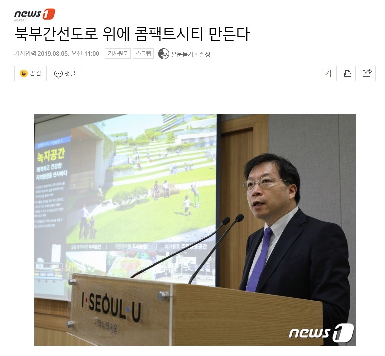 서울시는 중랑구 북부간선도로 '신내IC~중랑IC' 구간 상부에 인공대지(약 7만5000㎡)를 만들고, 공공주택 1000가구를 비롯해 주거·여가·일자리가 어우러진 콤팩트시티를 조성한다. 2019.8.5/뉴스1