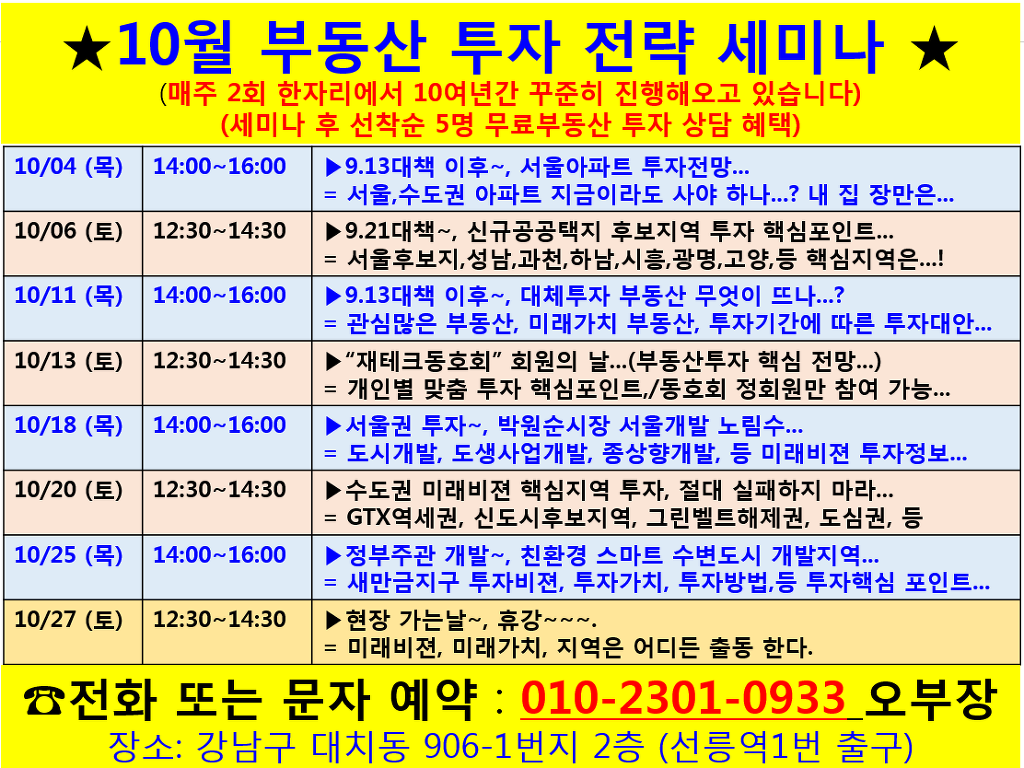 매주 2회 부동산 투자 세미나 & 무료상담 진행 중