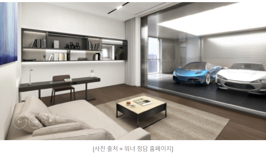 국내 최초로 자가용을 거실에 주차할 수 있는 스카이가라지.지하 와인 보관소