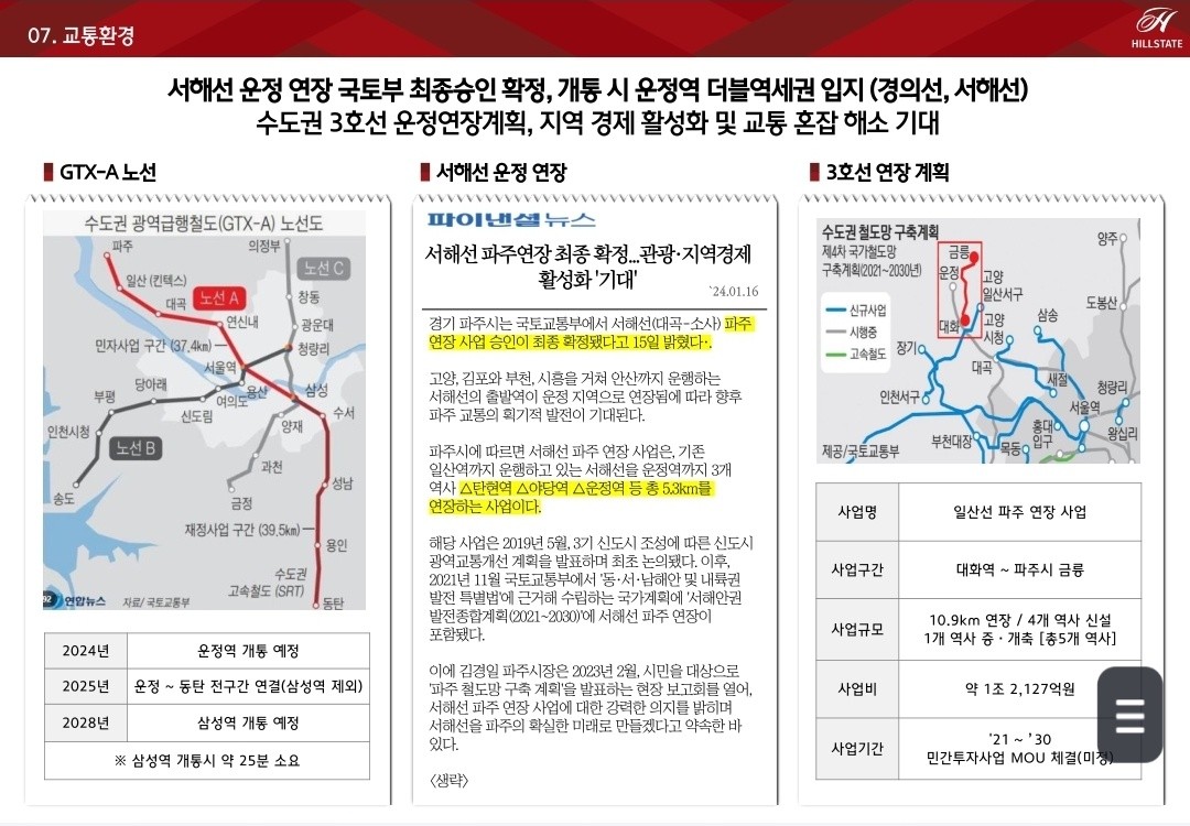 GTX-A 노선을 포함한 다양한 노선으로 환승이 용이한 "경의선 운정역 초역세권"