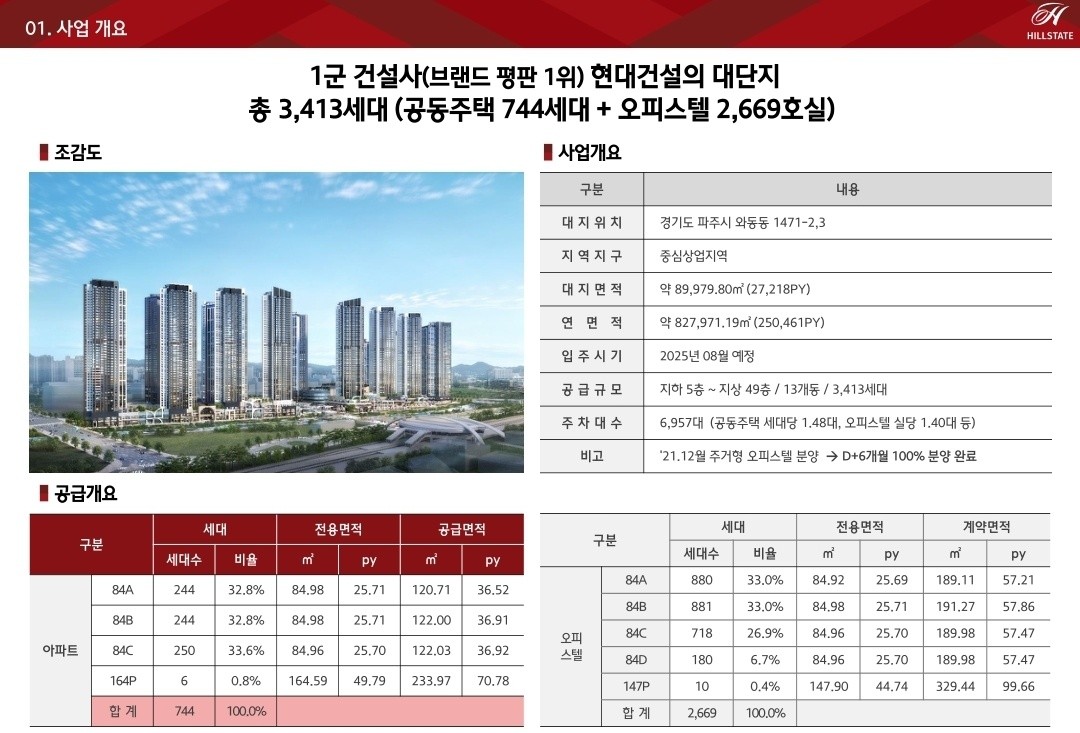 1군 건설사(브랜드파워 평판 1위) 현댜건설의 대 단지 총 3,413세대