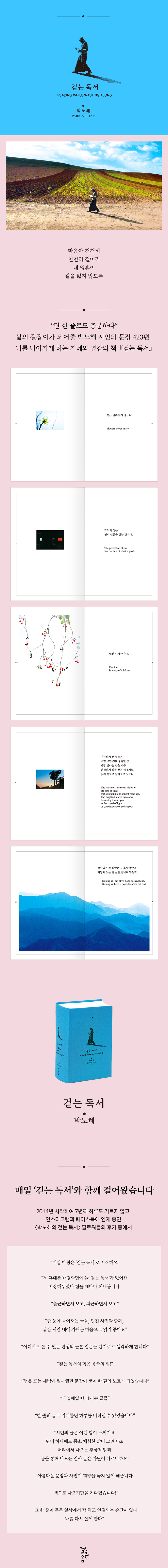 이 『걷는 독서』 가 그대 안에 있는 하많은 생각과 지식들을 ‘목적의 단 한 줄’로 꿰어내는 삶의 화두가 되고 창조의 영감이 되고 어려운 날의 도약대가 되기를.