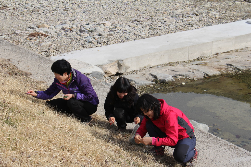 주차장 잔디밭에 쑥쑥자란 쑥을 보고 반가워서 뒤풀이의 도다리 쑥국을 위해서
