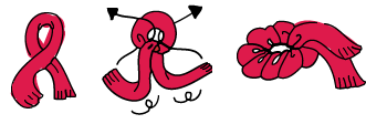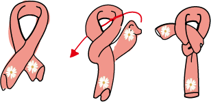 3. 꽈배기 꼬듯 비틀면서 양단을 각기 반대방향으로 고리를 통과하게 한다. 매듭은 옆으로