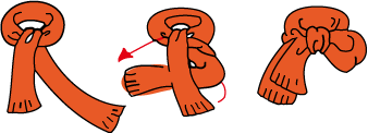 1.앞으로 흘려보낸 양끝을 그 자리에서 매듭짓기