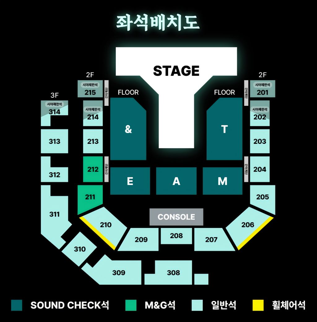 1. &, T, A 구역 플로어 무대 기준 5열 이내 15만원