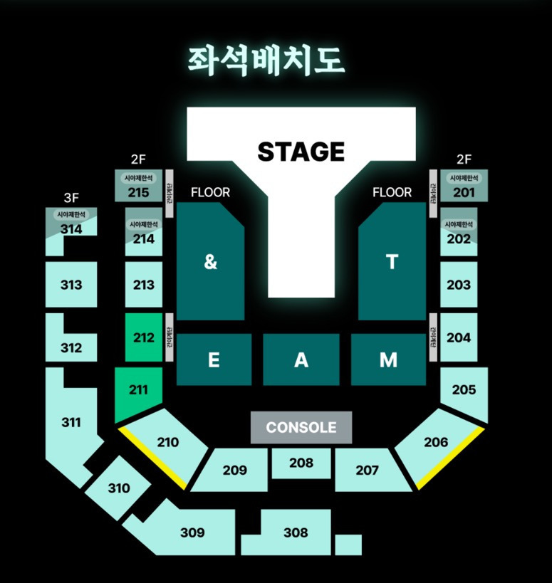 희망 좌석 - 플로어 &, T, A (무대 기준 3열이내 40 / 5열 이내 30 / 그 이후 20)