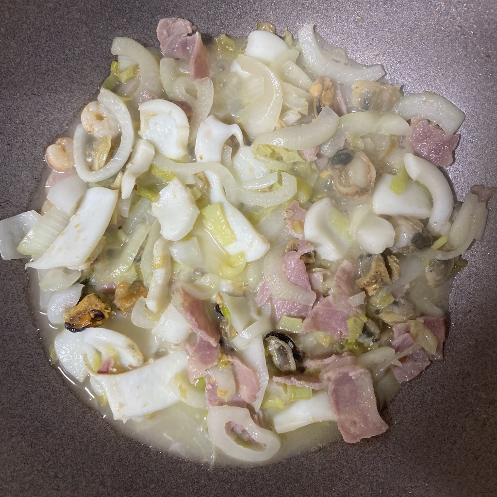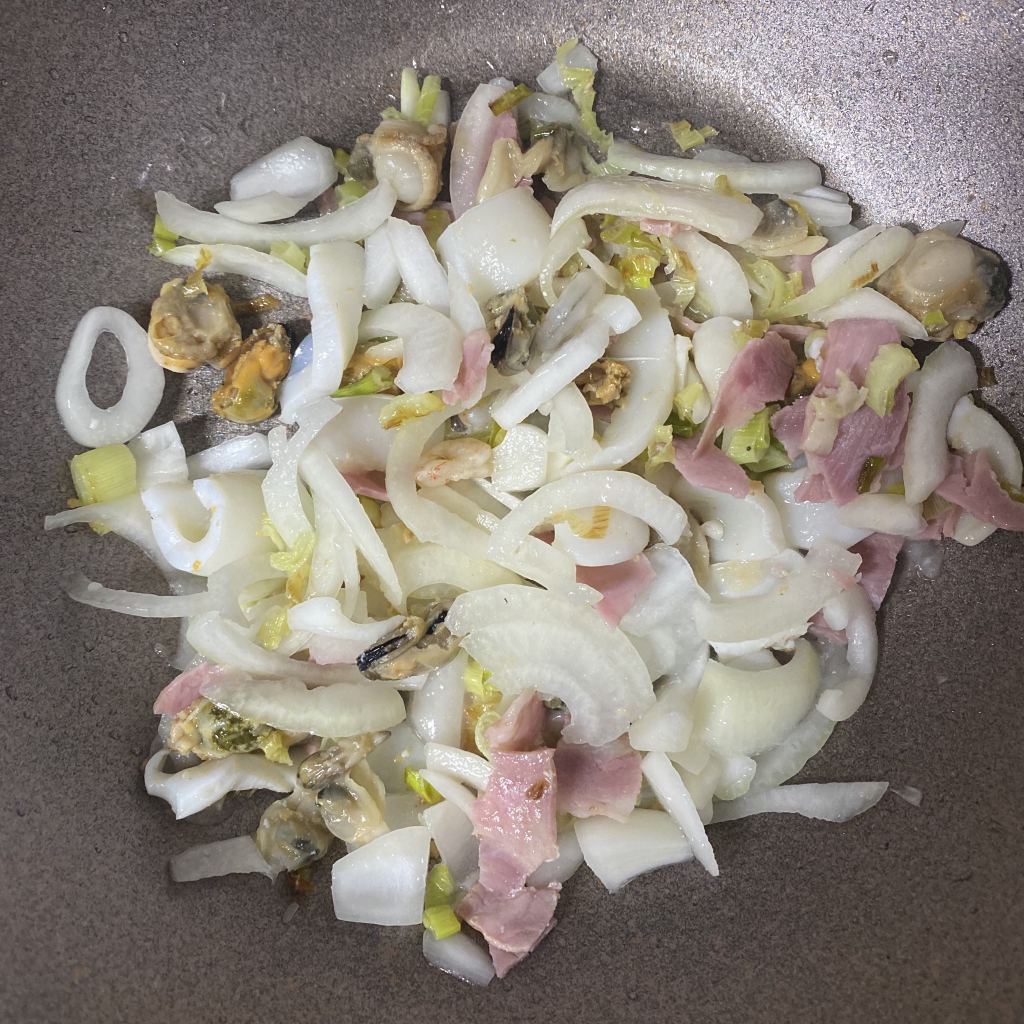 3. 파가 익으면 해물 믹스, 베이컨,