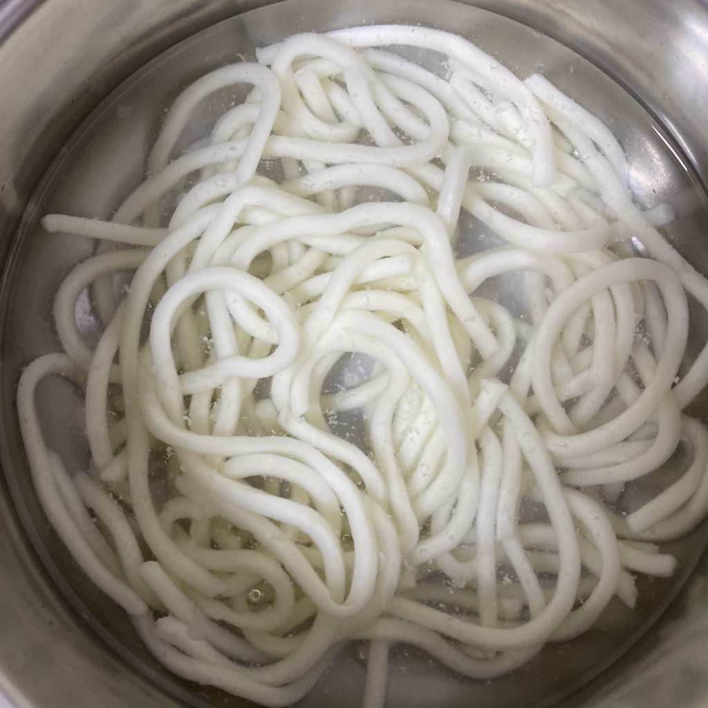 1. 냄비에 물 넣고 끓으면 우동면 넣어서 풀어주기