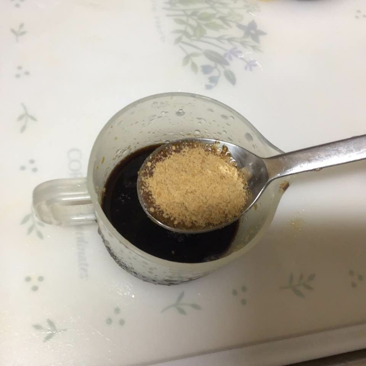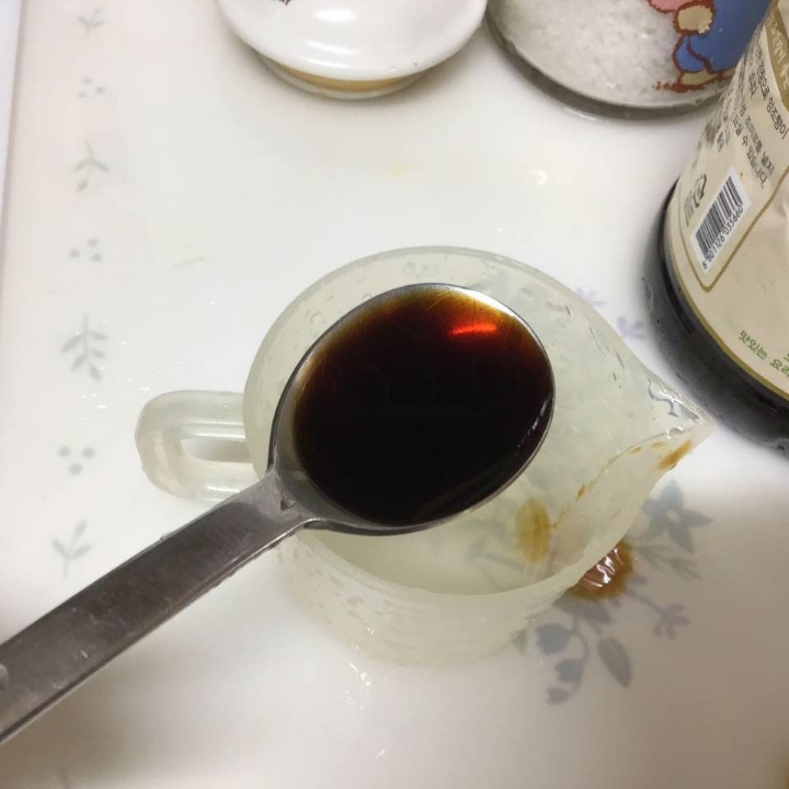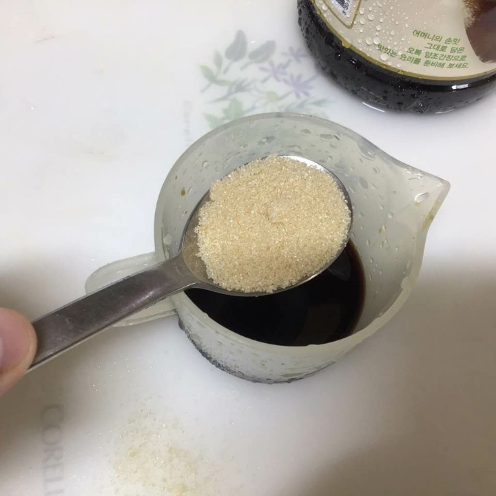 3. 양념은 밥숟가락으로 간장7, 설탕5, 조미료1을 섞어줍니다