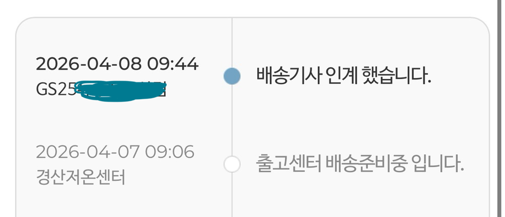 거의 대부분 배송기사 인계 후에 3시간 뒤면 도착했었거든