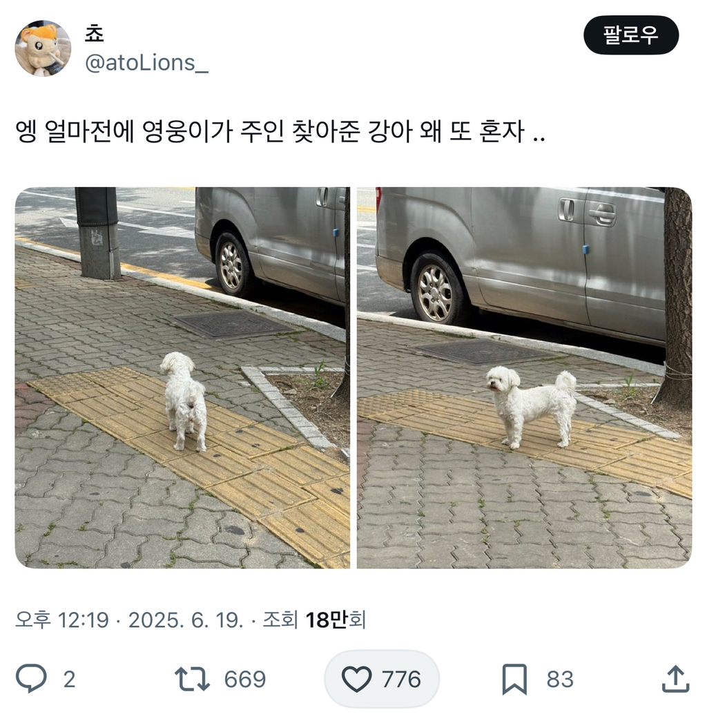 작성시간 25.06.20 말티푸가 혼자 저러고 다니면 다 주인 잃어버린줄 알듯