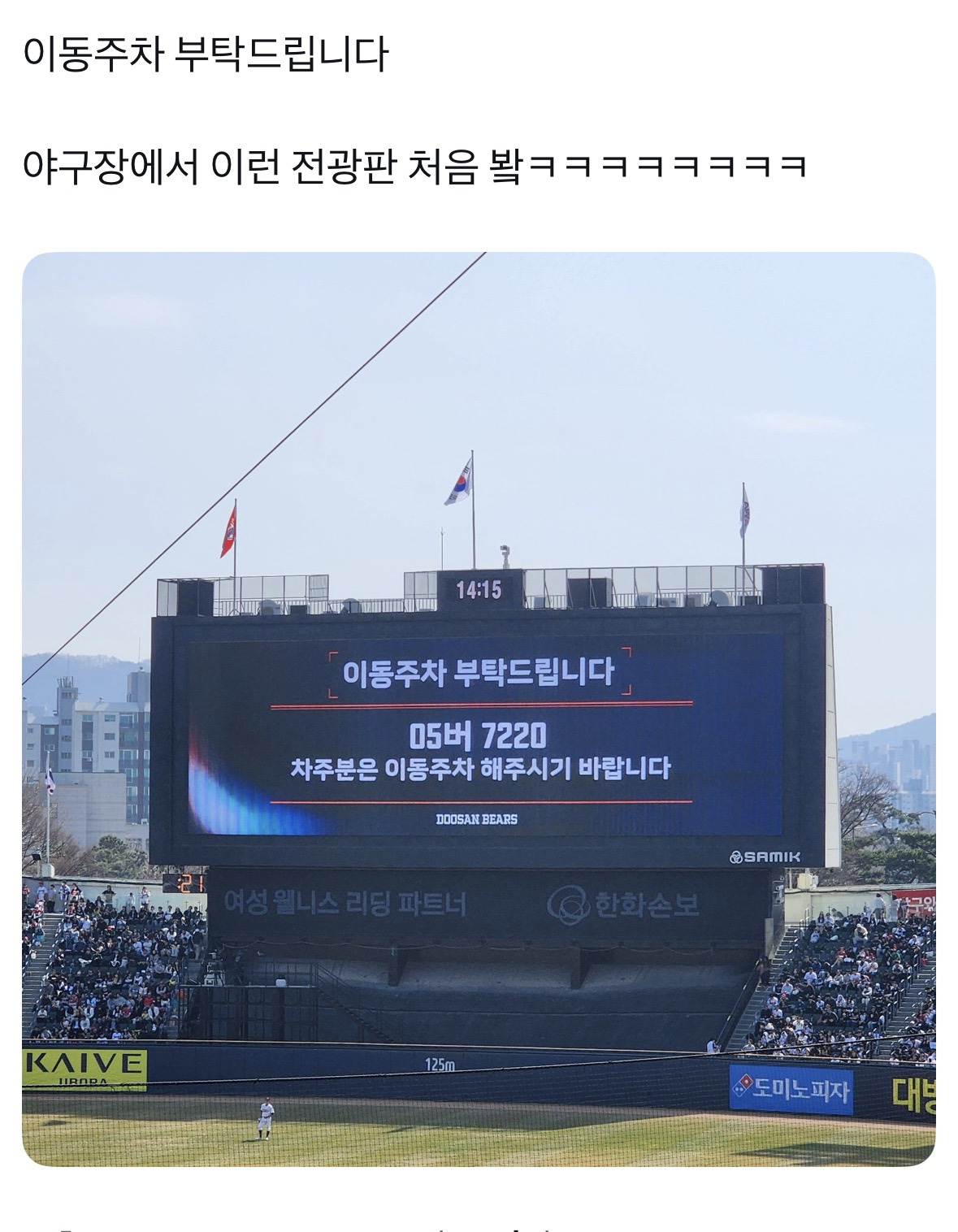 아웃기네 작성자JB|작성시간26.03.22|조회수873 목록 댓글 3 글자크기 작게가 글자크기 크게가 내차 번호가 저기 뜨면 멘붕올듯 다음검색 현재 게시글 추가 기능 열기 북마크 신고 센터로 신고 댓글 댓글 3 댓글쓰기 답글쓰기 댓글 리스트 작성자JB | 작성시간 26.03.22 헐 이런거 잘 안떠? 우리팀 맨날 뜨는 것 같은데 답댓글 작성자JB 작성자 본인 여부 작성자 | 작성시간 26.03.22 헐 ㄹㅇ?? 나 난생첨봐 답댓글 작성자JB | 작성시간 26.03.22 우리 주차장이 거지여서 그런가봐 댓글 전체보기