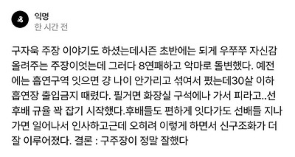 구자욱 악마되면 무성울라나?? 작성자JB|작성시간26.04.01|조회수990 목록 댓글 4 글자크기 작게가 글자크기 크게가 ㅋㅋㅋㅋㅋ궁금 다음검색 현재 게시글 추가 기능 열기 북마크 신고 센터로 신고 댓글 댓글 4 댓글쓰기 답글쓰기 댓글 리스트 작성자JB | 작성시간 26.04.01 원래 저런사람이 기강잡으면 무섭지않나 작성자JB | 작성시간 26.04.01 ㅈㄴ무서울 것 같은데 작성자JB | 작성시간 26.04.01 원래 저런 사람이 기강잡기 시작하면 무서워 작성자JB | 작성시간 26.04.01 ㅈㄴ 무서울걸? 쟤 은근 그런거 중요시 생각함 댓글 전체보기