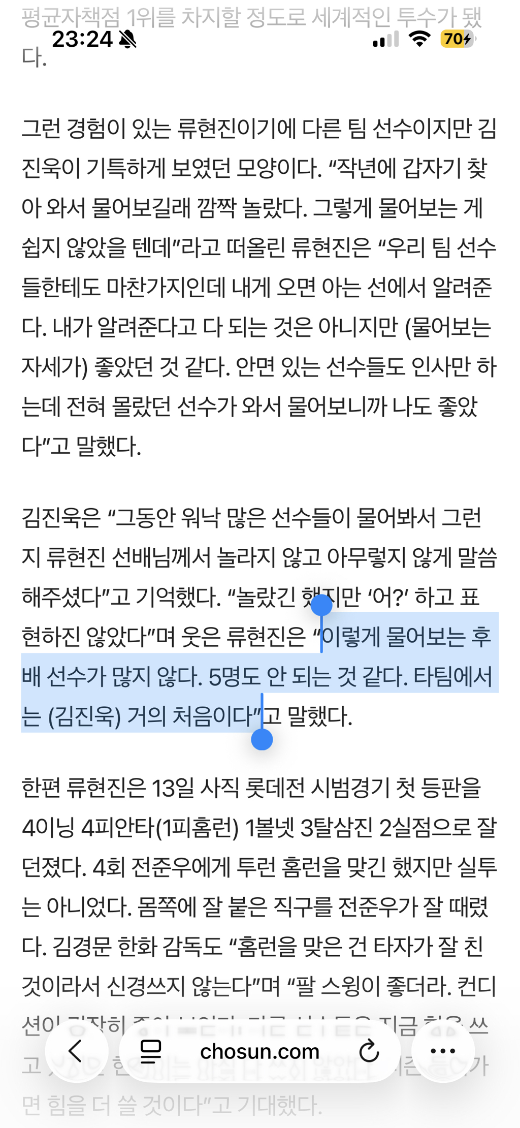 김진욱이 류현진찾아가서 체인지업 조언 구했대 작성자JB|작성시간26.04.08|조회수1,218 목록 댓글 15 글자크기 작게가 글자크기 크게가 작년 기사긴한데 오늘 8이닝던진거보고 이것저것 찾아보다 발견ㅠ 올해 사비로 훈련도 다녀왔다는데 열심히 하는 선수들 많아졌음 좋겠다 다음검색 현재 게시글 추가 기능 열기 북마크 신고 센터로 신고 댓글 댓글 15 댓글쓰기 답글쓰기 댓글 리스트 답댓글 작성자JB | 작성시간 26.04.08 ㄱㄴㄲㅋㅋㅋㅋㅋㅋㅋㅋㅋㅋㅋ 작성자JB | 작성시간 26.04.08 작성자JB | 작성시간 26.04.08 하 임티 ㅋㅋㅋㅋ 작성자JB | 작성시간 26.04.09 new 작성자JB | 작성시간 26.04.09 new 아 그 선수구나 파이팅 댓글 전체보기