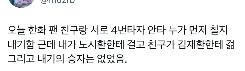 두 팬의 4번 타자 내기 작성자JB|작성시간26.04.09|조회수496 목록 댓글 7 글자크기 작게가 글자크기 크게가 다음검색 현재 게시글 추가 기능 열기 북마크 신고 센터로 신고 댓글 댓글 7 댓글쓰기 답글쓰기 댓글 리스트 작성자JB | 작성시간 26.04.09 작성자JB | 작성시간 26.04.09 안 작성자JB | 작성시간 26.04.09 이미지 확대 작성자JB | 작성시간 26.04.09 작성자JB | 작성시간 26.04.09 우취 아니었으면 김재환 4번이었다고 기사뜸 ㅅㅂ 댓글 전체보기